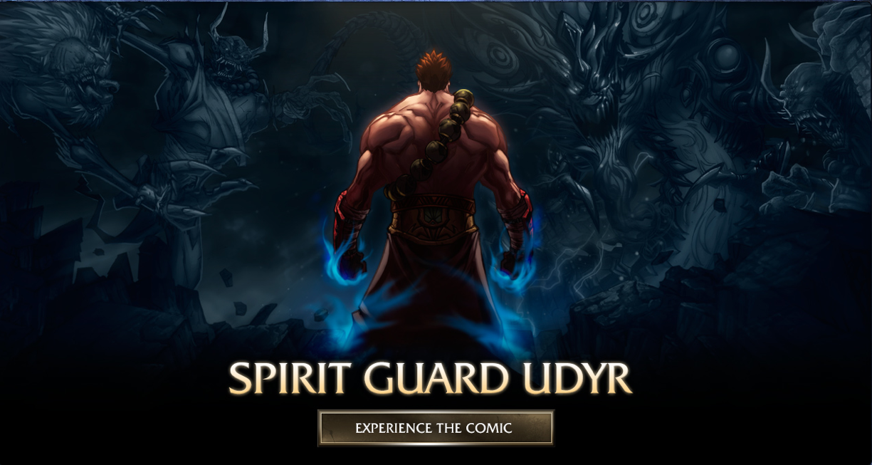 As if they were just waiting for me to publish that last post, so they could slap me across their face with a rebuttal, Riot Games just updated their game client to prominently display an interactive comic, heralding the release of the new Ultimate Skin, Spirit Guard Udyr.